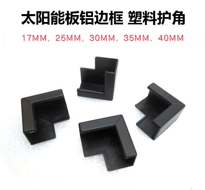 太陽能光伏組件護角(太陽能電池板鋁邊框護角),采用工程級ABS塑料注塑成型,強度高。護角結(jié)構(gòu)簡單,使用時電池板可垂直快速連接,組裝方便。護角的邊角為圓弧狀,有效避免在運輸、組裝等過程中劃傷人體或其他物體,(現(xiàn)有規(guī)格25*25,30*30,35*35,40*40MM等)適合150-230W左右鋁過框的為35*50MM的,150W以下鋁邊框為25*25的電池板包裝時使用,并可根據(jù)客戶要求開發(fā)其他規(guī)格護角!