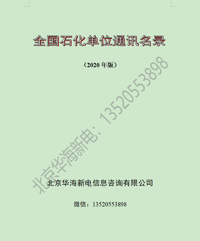 全國(guó)石油化工單位內(nèi)部通訊名錄2020版資料提供:北京華海新電信息所