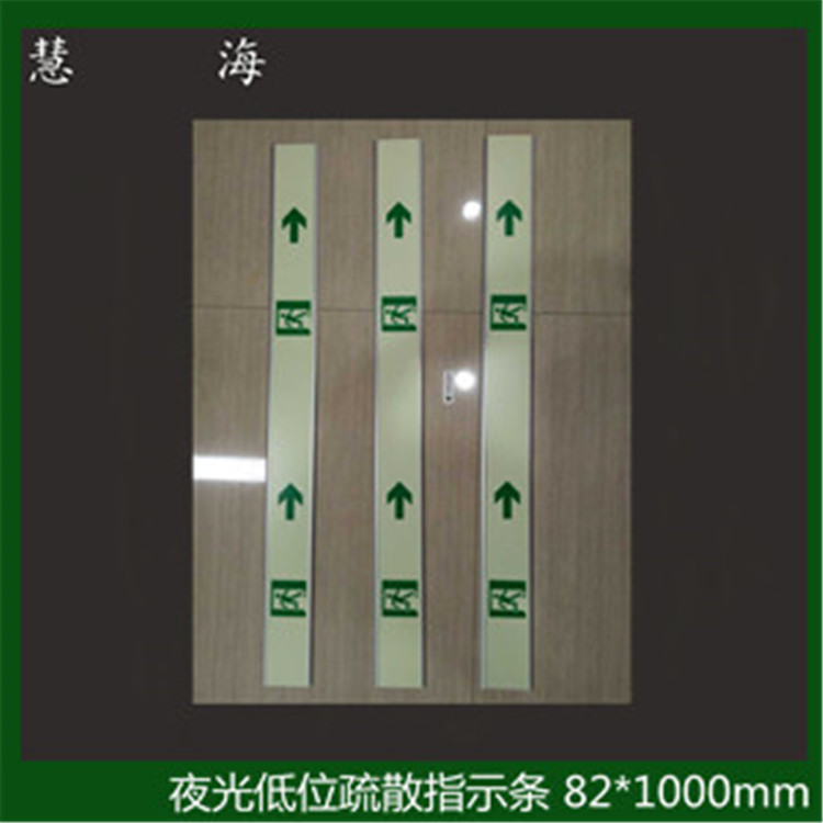 產品描述:1:通常采用0.41mm厚度蓄光型阻燃耐磨PVC或鋁合金板材作為基材,再表面印刷國標綠色圖案,常用產品背部帶有自粘膠,方便直接黏貼于光滑干凈的墻面。
