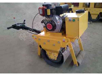 單輪壓路機用于壓實瀝青表面,壓實礫石、沙土等工程基礎(chǔ),碾壓草坪。作業(yè)半徑小,可在狹小的區(qū)域內(nèi)工作。。本機采用液壓傳動,前后雙向行走,振動采用離心式離合器,無級變速,通過拉動油門直接控制激振力大小。可調(diào)節(jié)的扶手,根據(jù)不同人的身高,可隨意調(diào)整,更符合人體力學,給操作者帶來舒適的操作環(huán)境,扶手折疊起來后可以方便運輸。特大水箱減少來回加水的麻煩,使設(shè)備增長了可連續(xù)的工作時間。鋼輪兩側(cè)安裝有可調(diào)節(jié)的自動清洗刮板,防止泥土和瀝青在鋼輪上聚集,使壓實工作更理想。