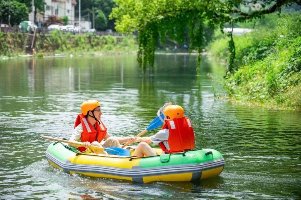 漂流河道全長2公里,落差達50米,為體驗者帶來約1-1.5小時的快樂航程。沿途既有水面開闊的緩流段,也有溪道曲折、水流湍急、跌宕起伏的刺激段,讓孩子們在清涼的水中盡情歡笑。