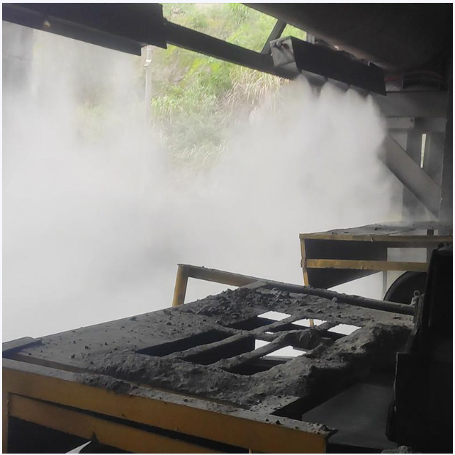 微米級干霧抑塵機能產(chǎn)生10微米一下的大量干霧,有效抑制粉塵散發(fā)。該設(shè)備能夠產(chǎn)生直徑在1-10微 米的水霧顆粒,對懸浮在空氣中粉塵—-特別是直徑在10微米以下的可吸入粉塵顆粒進(jìn)行有效的吸附而聚結(jié)成團(tuán),受重力作用而沉降,從而達(dá)到抑塵作用。